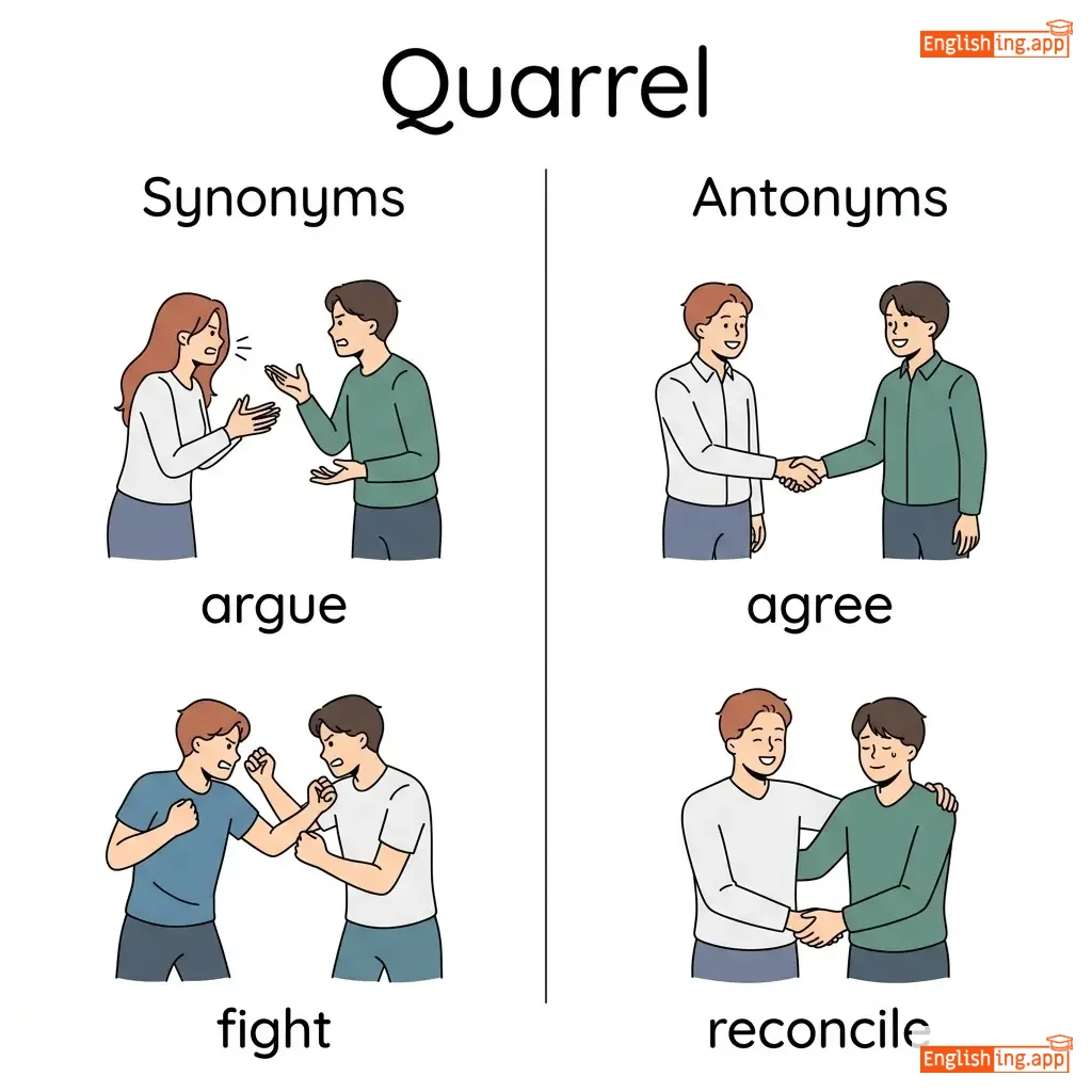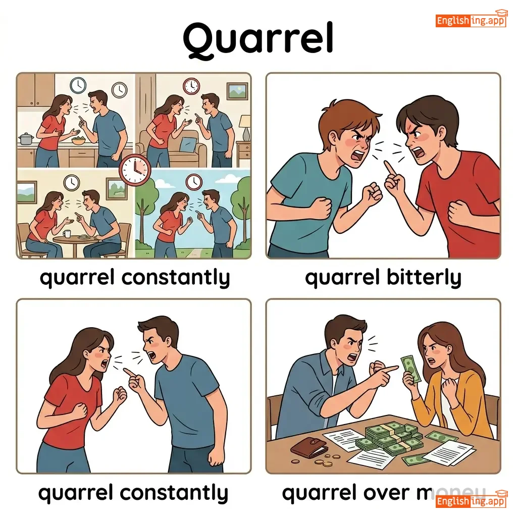 quarrel constantly, quarrel bitterly, quarrel over money, quarrel with family, quarrel about politics, quarrel frequently, bitter quarrel, family quarrel, pick a quarrel, settle a quarrel