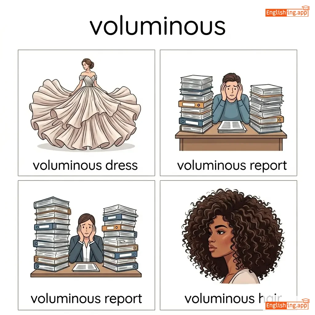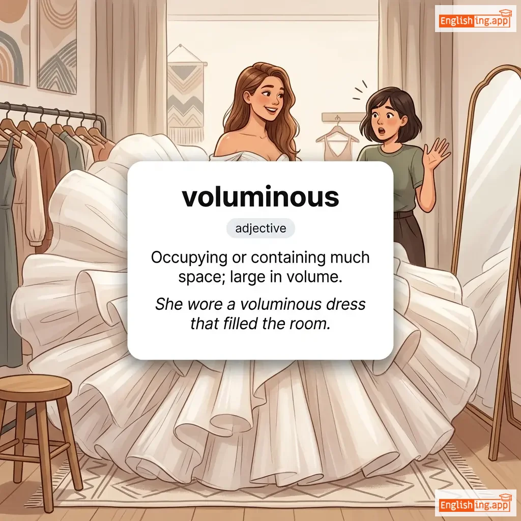 সে একটি বৃহদায়তন পোশাক পরেছিল যা ঘর ভরে ফেলেছিল।