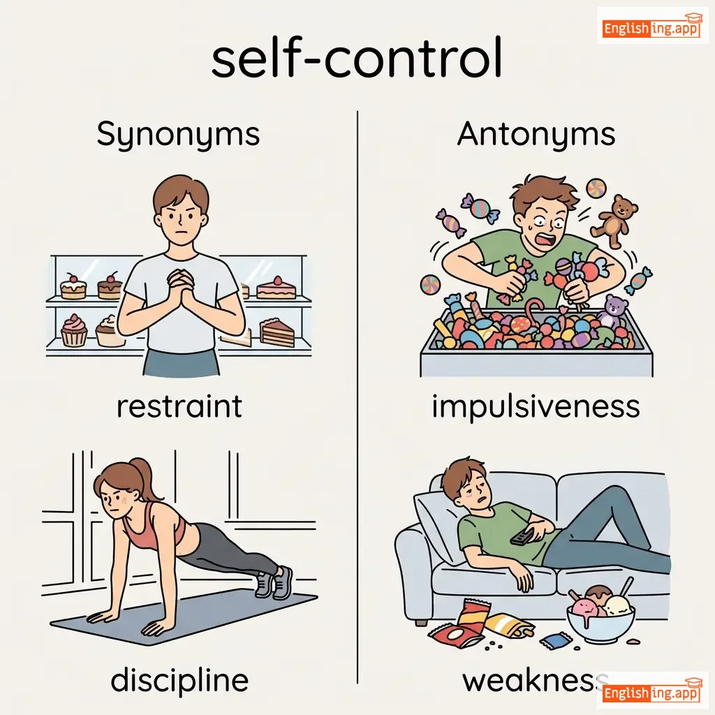 Deutsch: 'Selbst' bedeutet sich selbst und 'Beherrschung' bedeutet Kontrolle oder Einschränkung.
