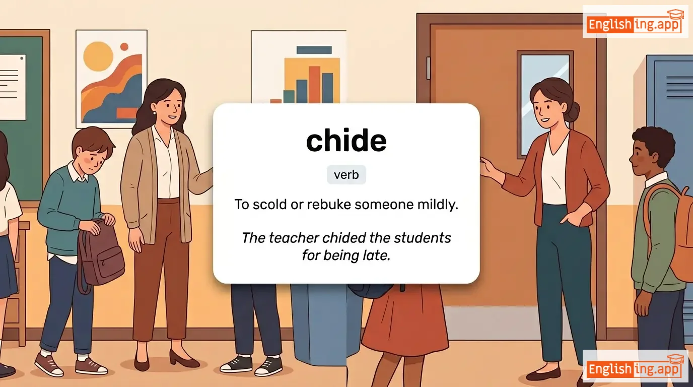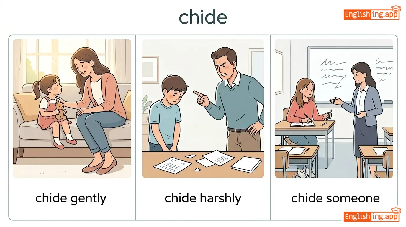 chide gently, chide harshly, chide someone, chide away, chide for mistakes, chide repeatedly
