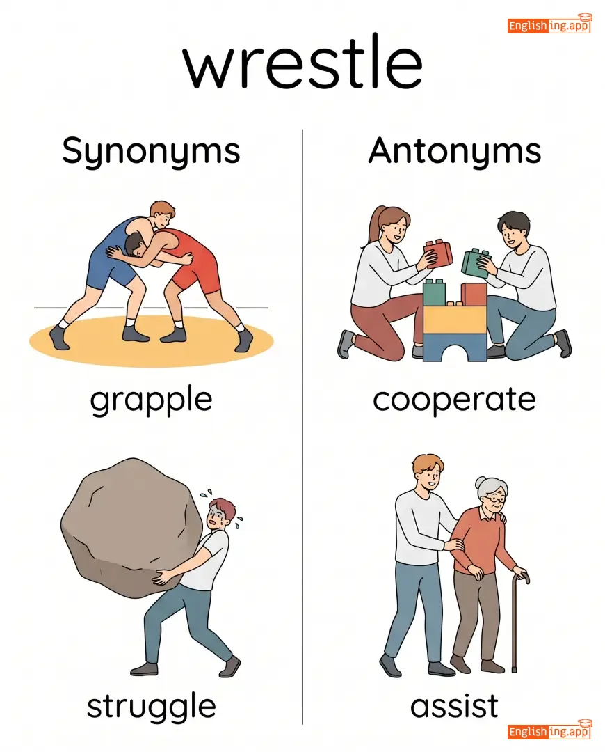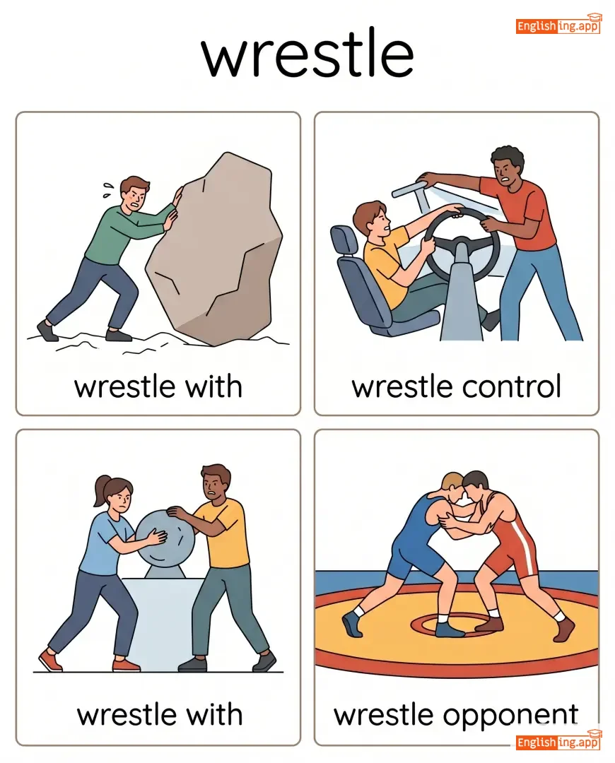wrestle with, wrestle control, wrestle opponent, wrestle problem, wrestle ground
