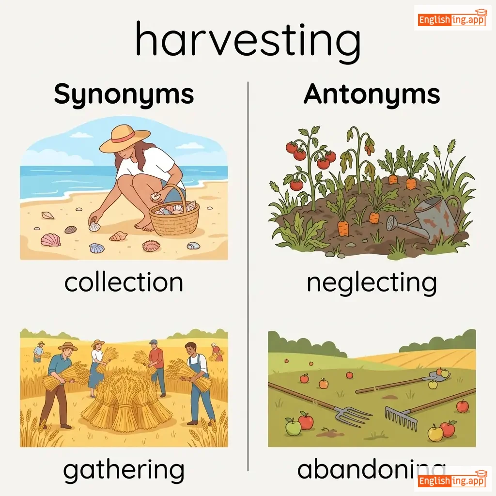 Cosecha, que es la recolección de recursos naturales o cultivos.