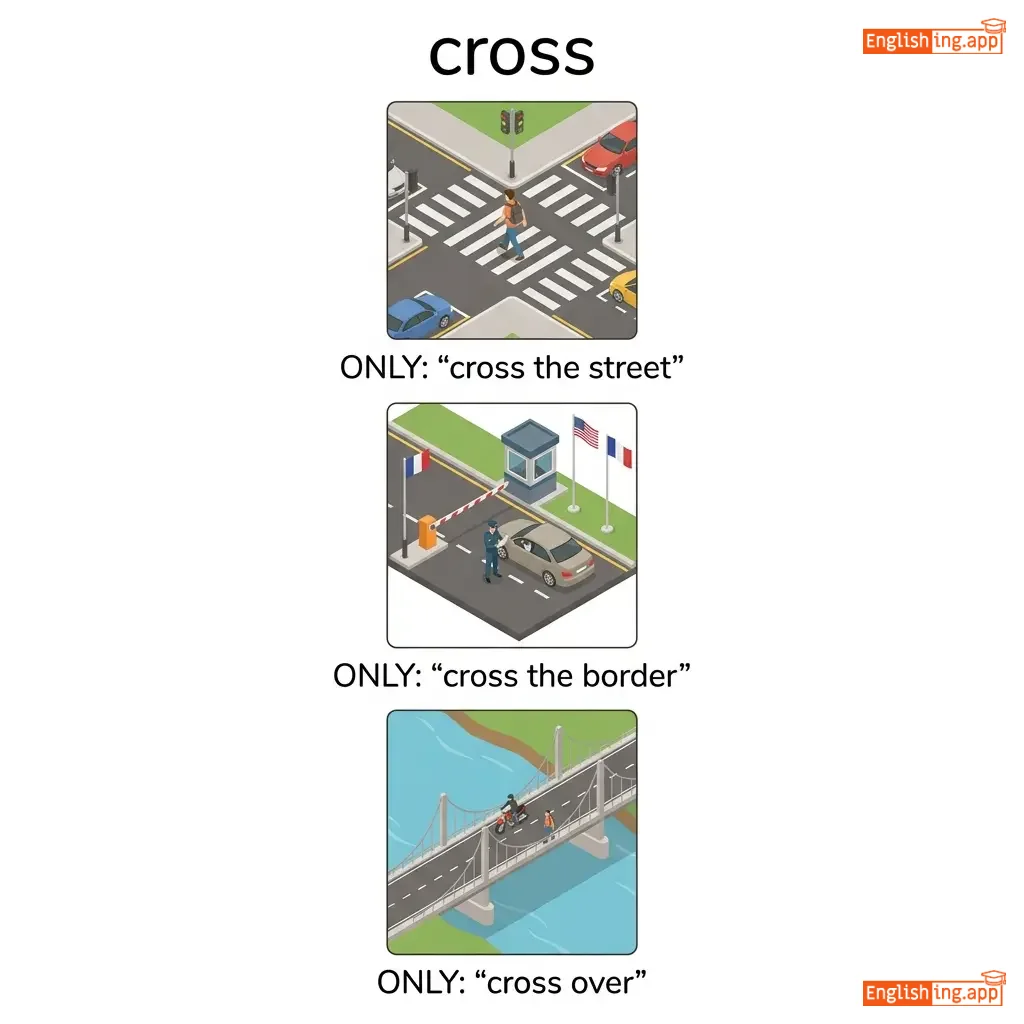 cross the street, cross the border, cross over, cross path