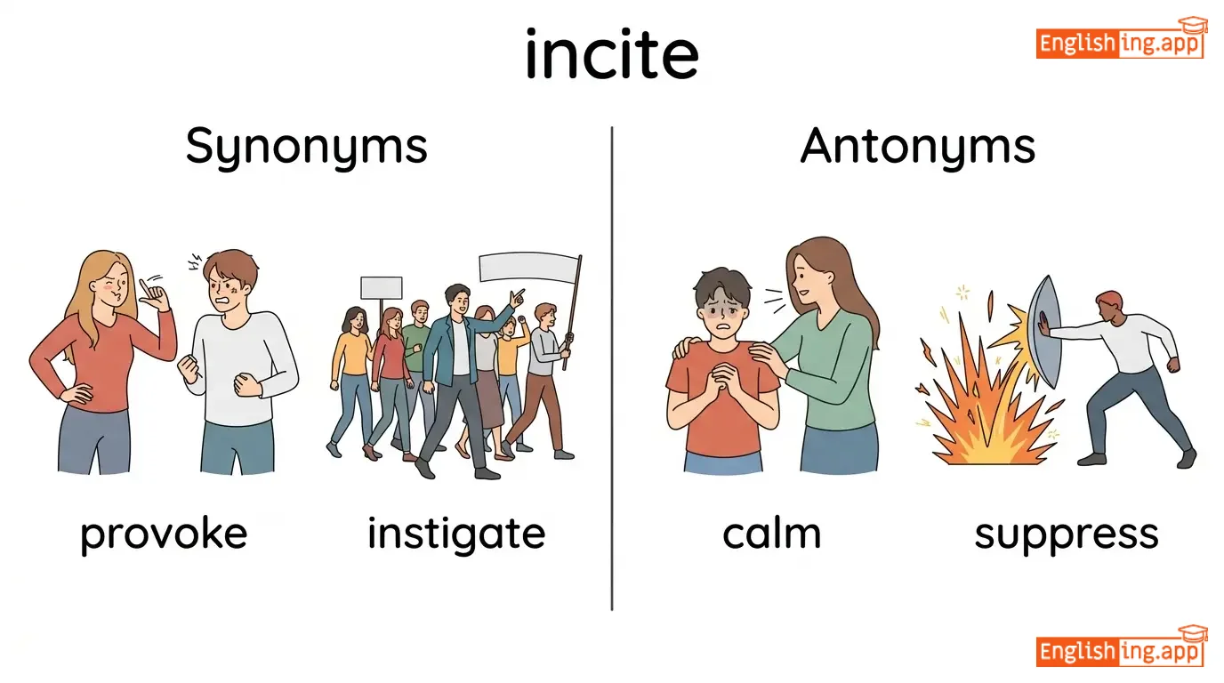 Inciter signifie inciter - rappelez-vous: inciter à la protestation.