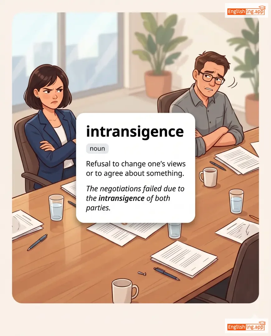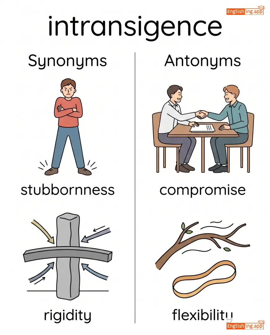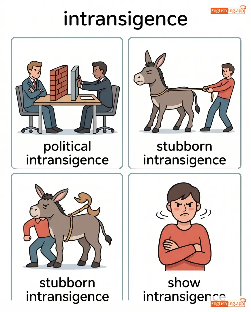 intransigent attitude, intransigent leader, politically intransigent, remain intransigent