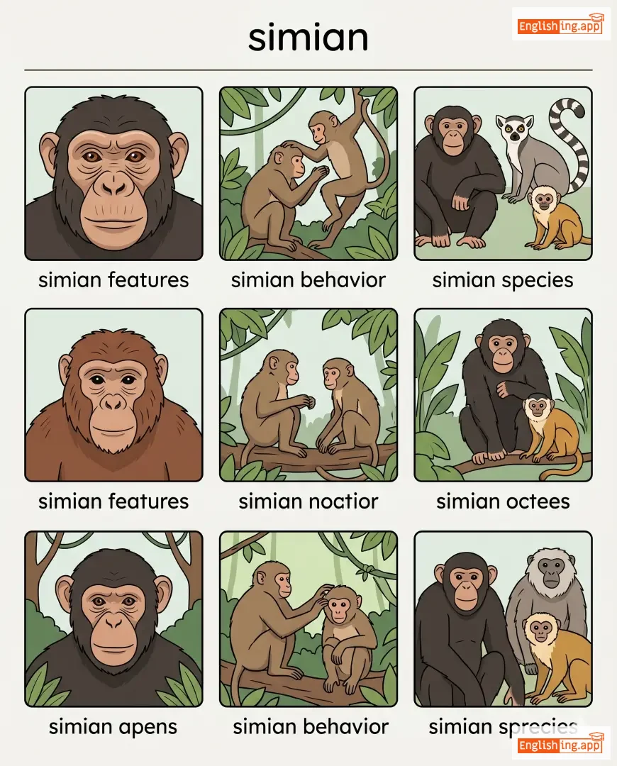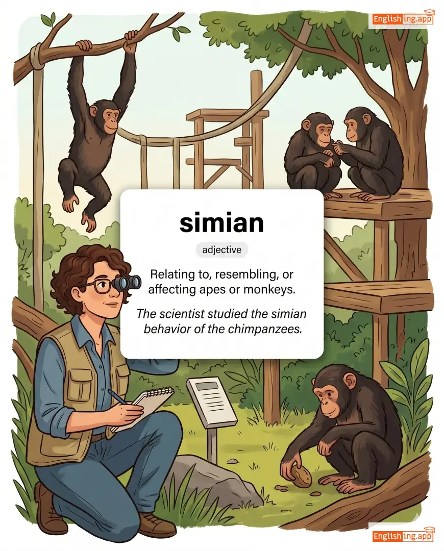 The scientist studied the simian behavior of the chimpanzees. |