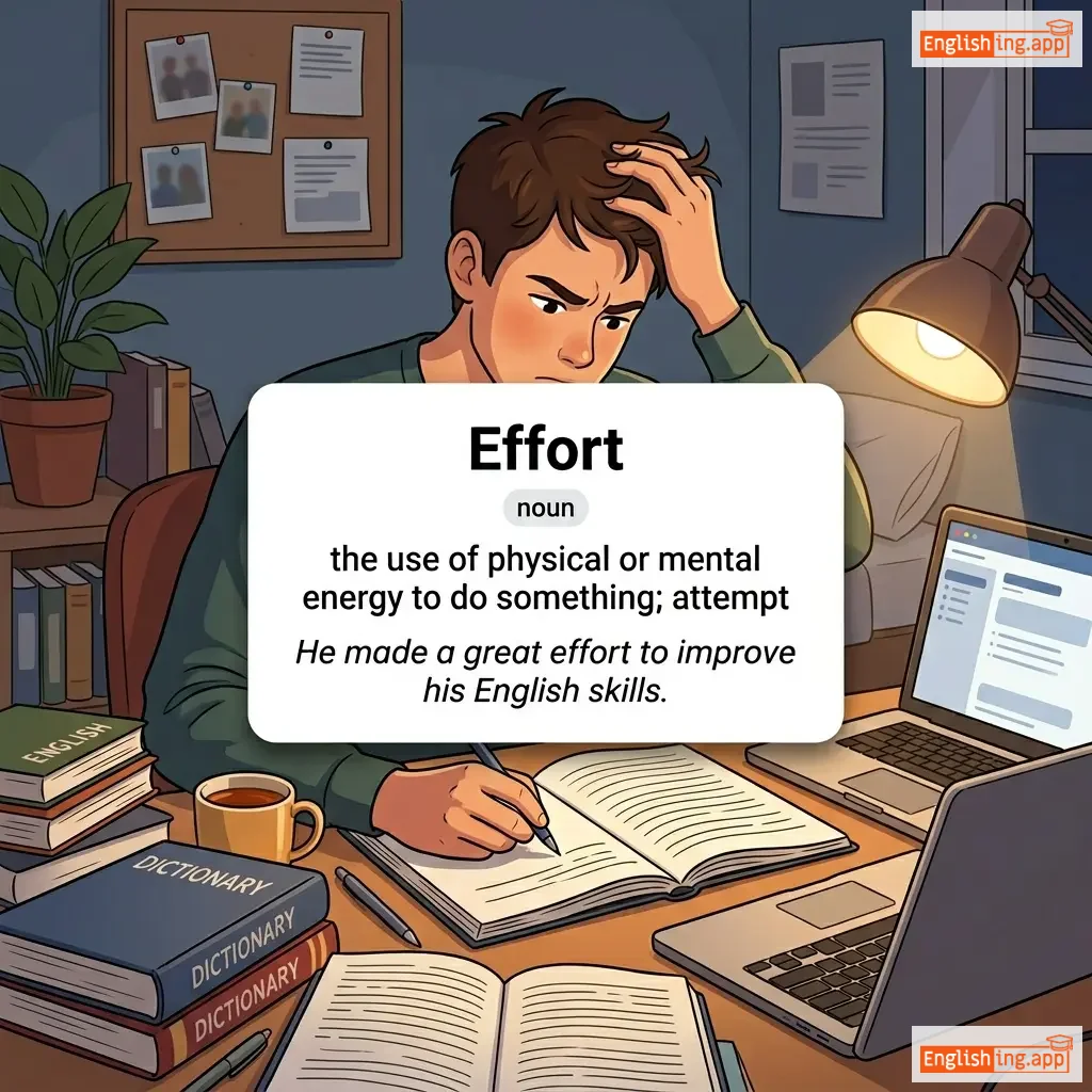 He made a great effort to improve his English skills. |