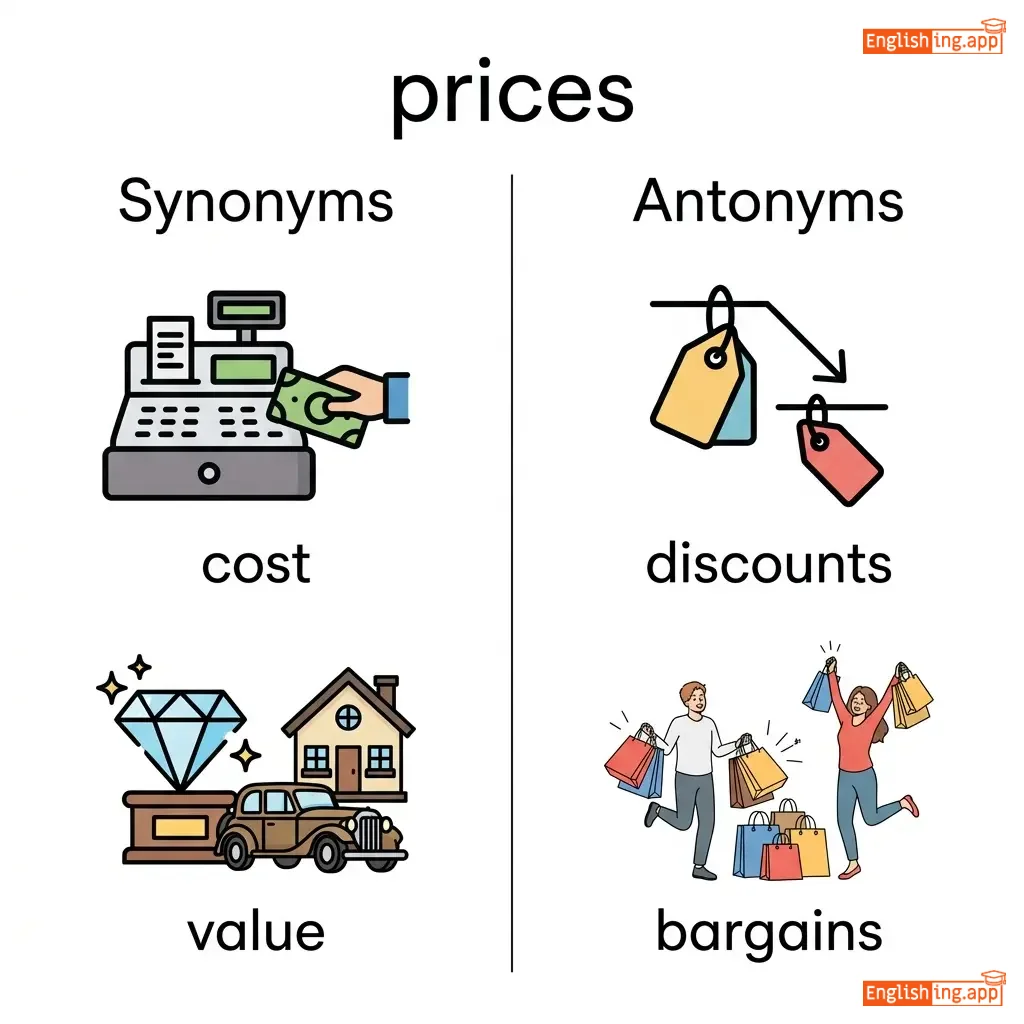 कीमतें और दाम सामान के बदले भुगतान की राशि दर्शाते हैं।