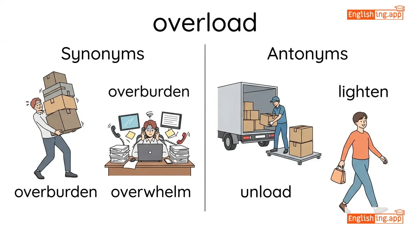 बहुत अधिक वजन या माल से लोड करना; बहुत अधिक काम या जानकारी देना