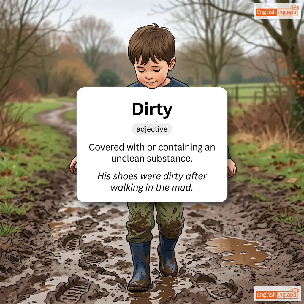 filthy, unclean, soiled, grimy