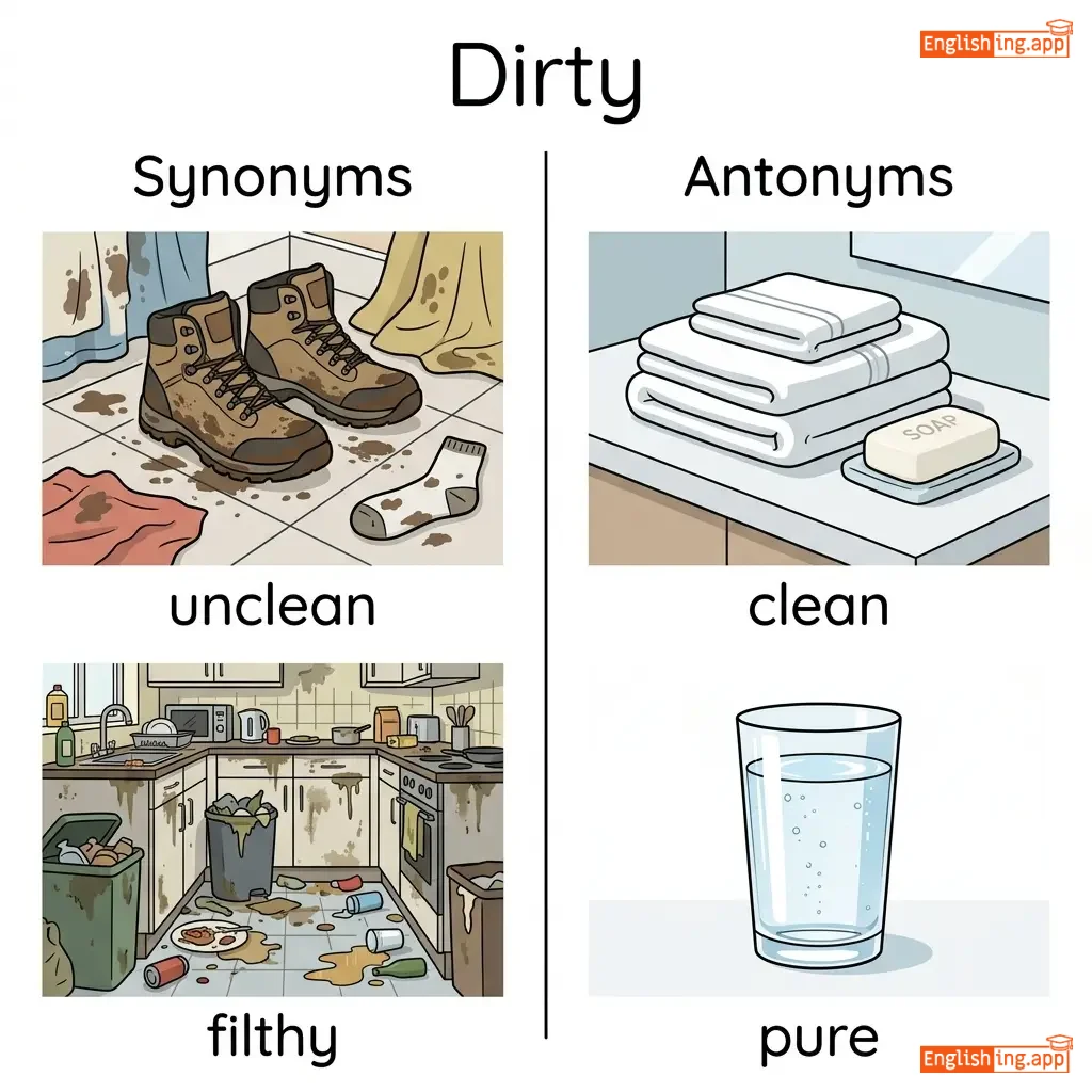 not clean; covered with dirt; unpleasant; morally corrupt