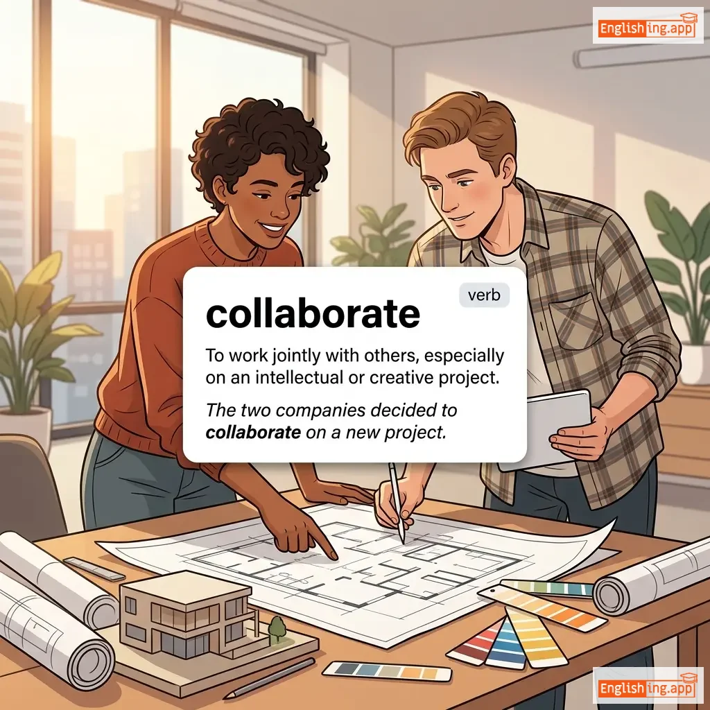 To work jointly with others, especially in an intellectual endeavor; cooperate.