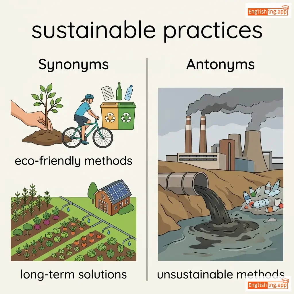 Methods or actions that can be maintained long-term without depleting resources or causing environmental harm