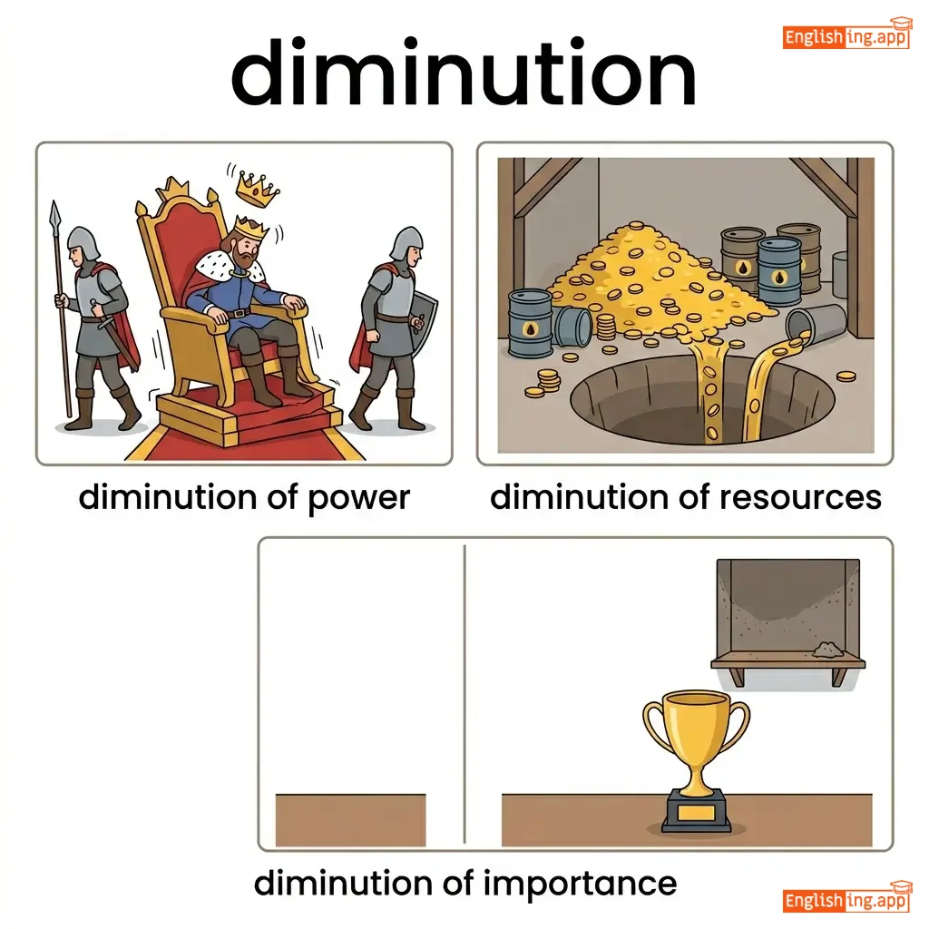 A reduction in the size, extent, or importance of something; decrease.
