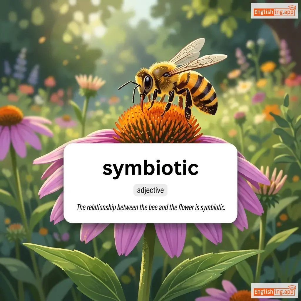 The relationship between the bee and the flower is symbiotic. |