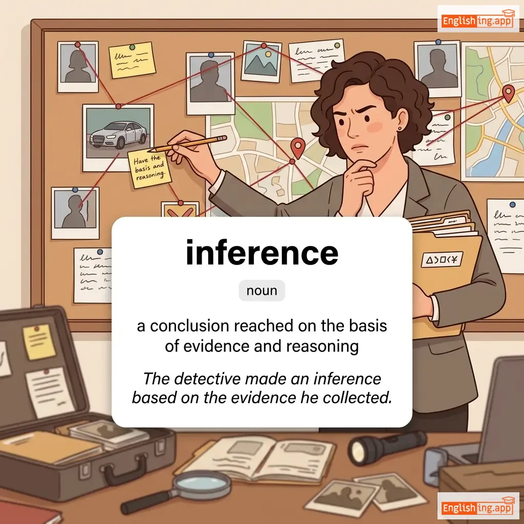 A conclusion reached on the basis of evidence and reasoning; logical deduction.