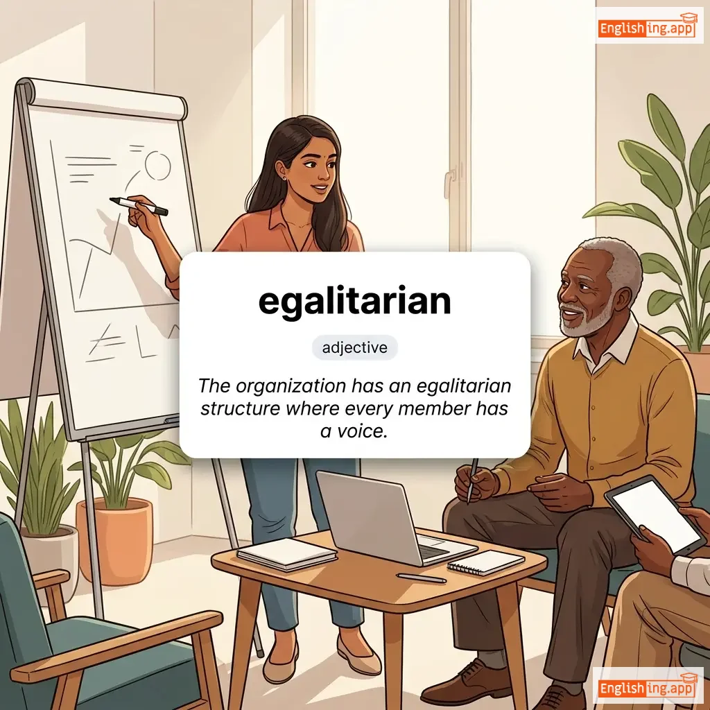 Believing in or based on the principle that all people are equal and deserve equal rights and opportunities.