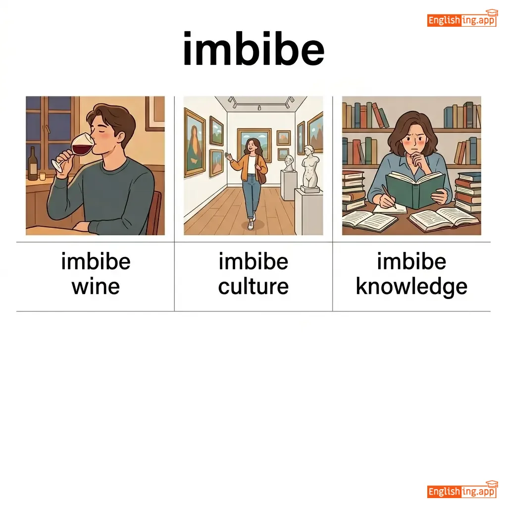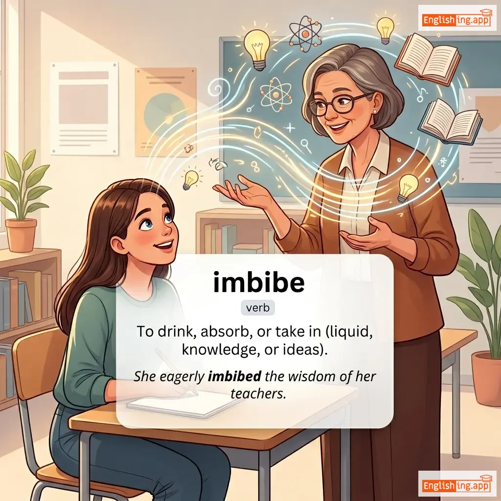 Absorb or assimilate ideas or knowledge. To drink or take in.