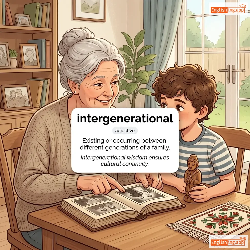 Existing or occurring between different generations of a family.