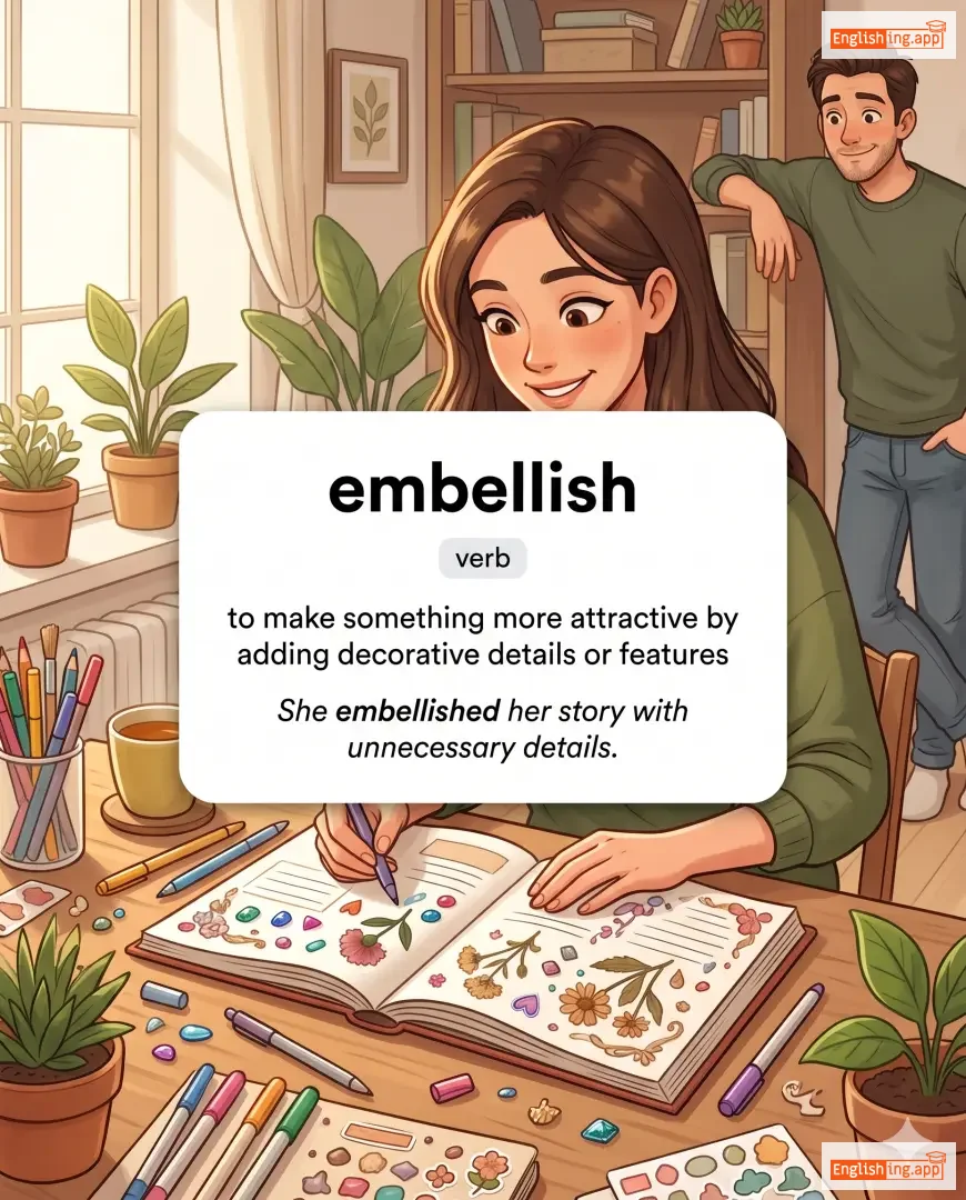 To make something more attractive by adding decorative details or exaggerating.