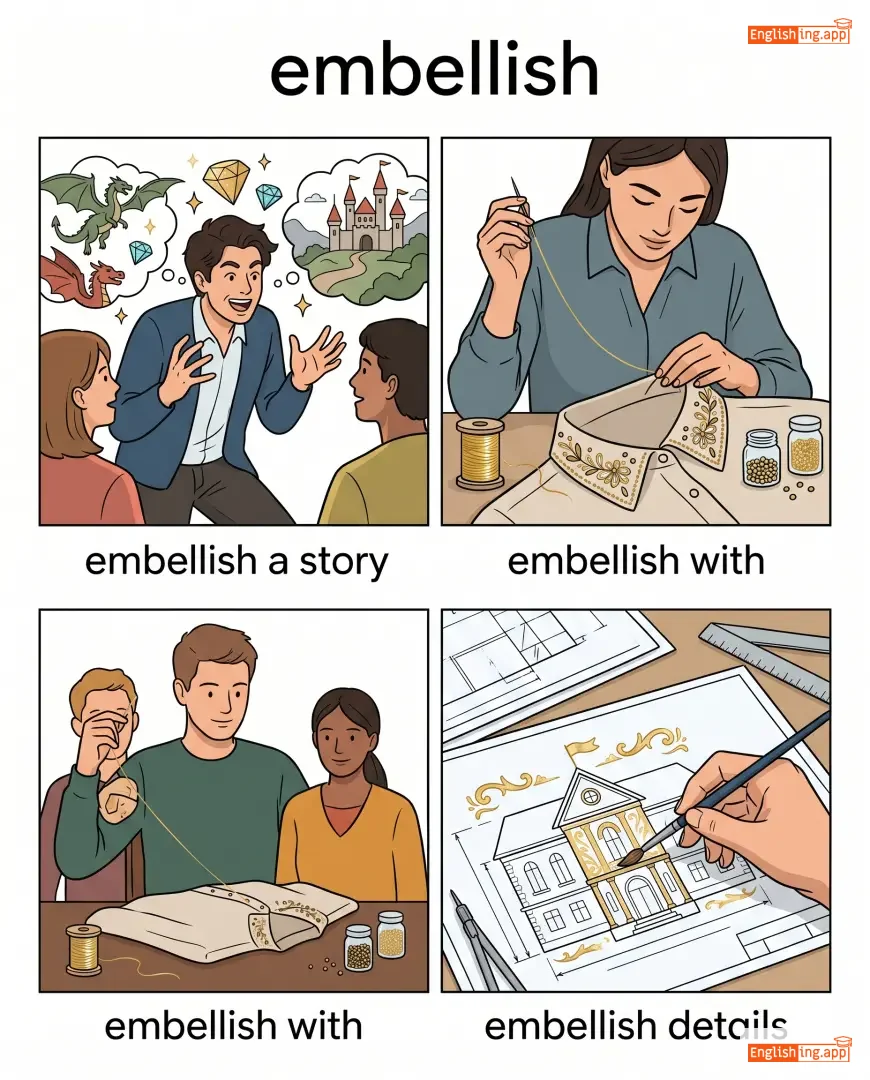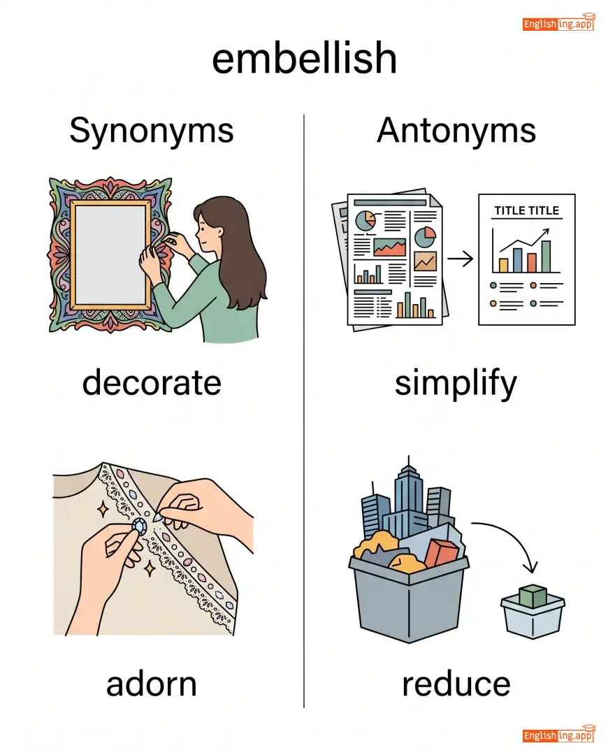 decorate, enhance, exaggerate