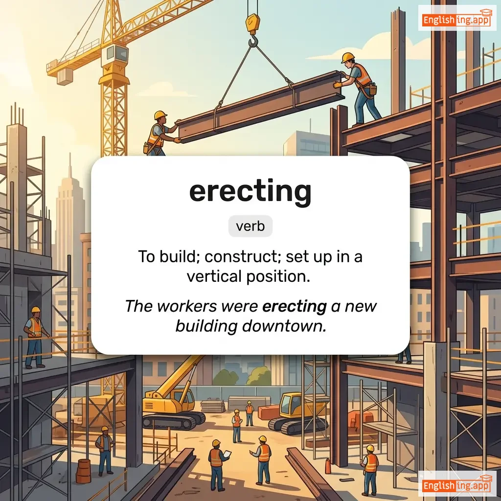 The workers were erecting a new building downtown. |
