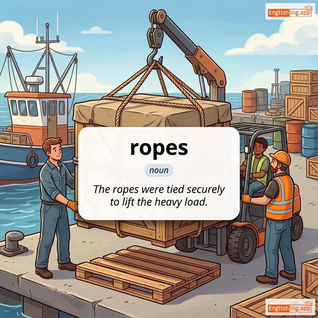 The ropes were tied securely to lift the heavy load. |