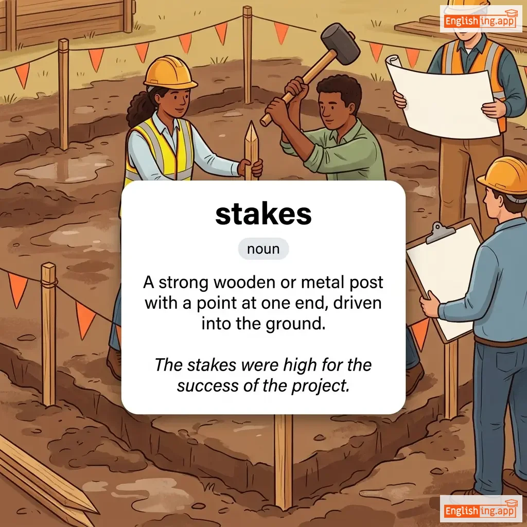 A strong wooden or metal post with a point at one end, driven into the ground.