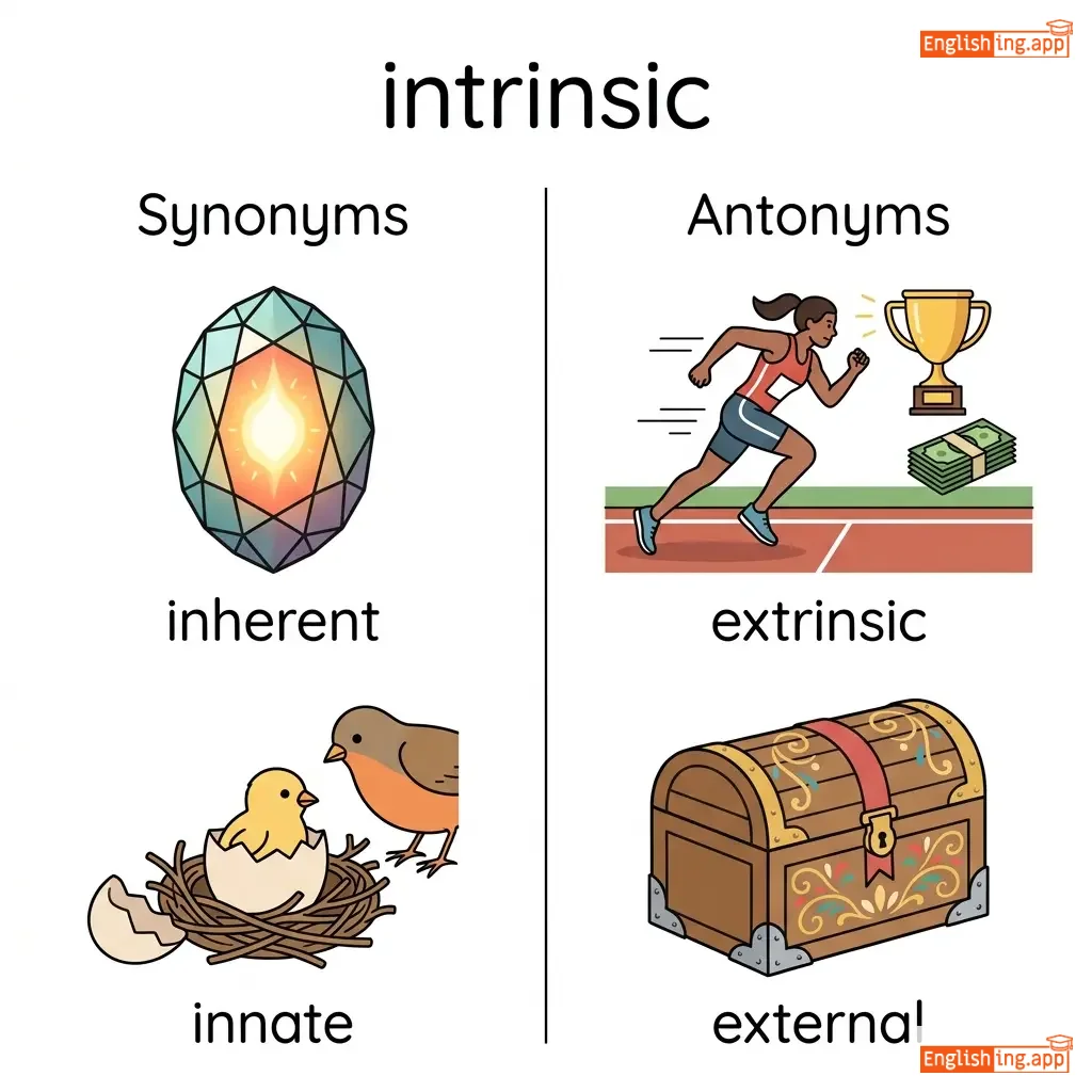 Belonging naturally; essential; inherent in the nature of something rather than coming from external factors.