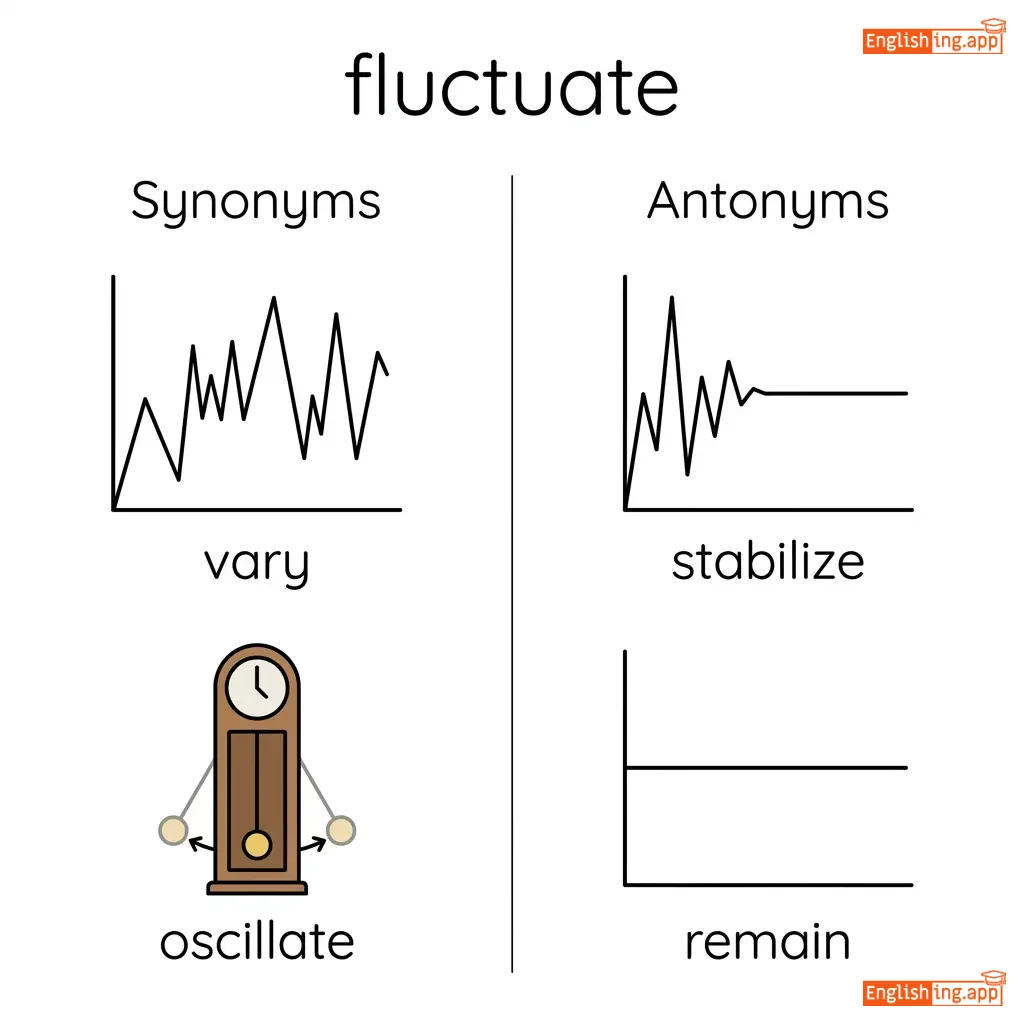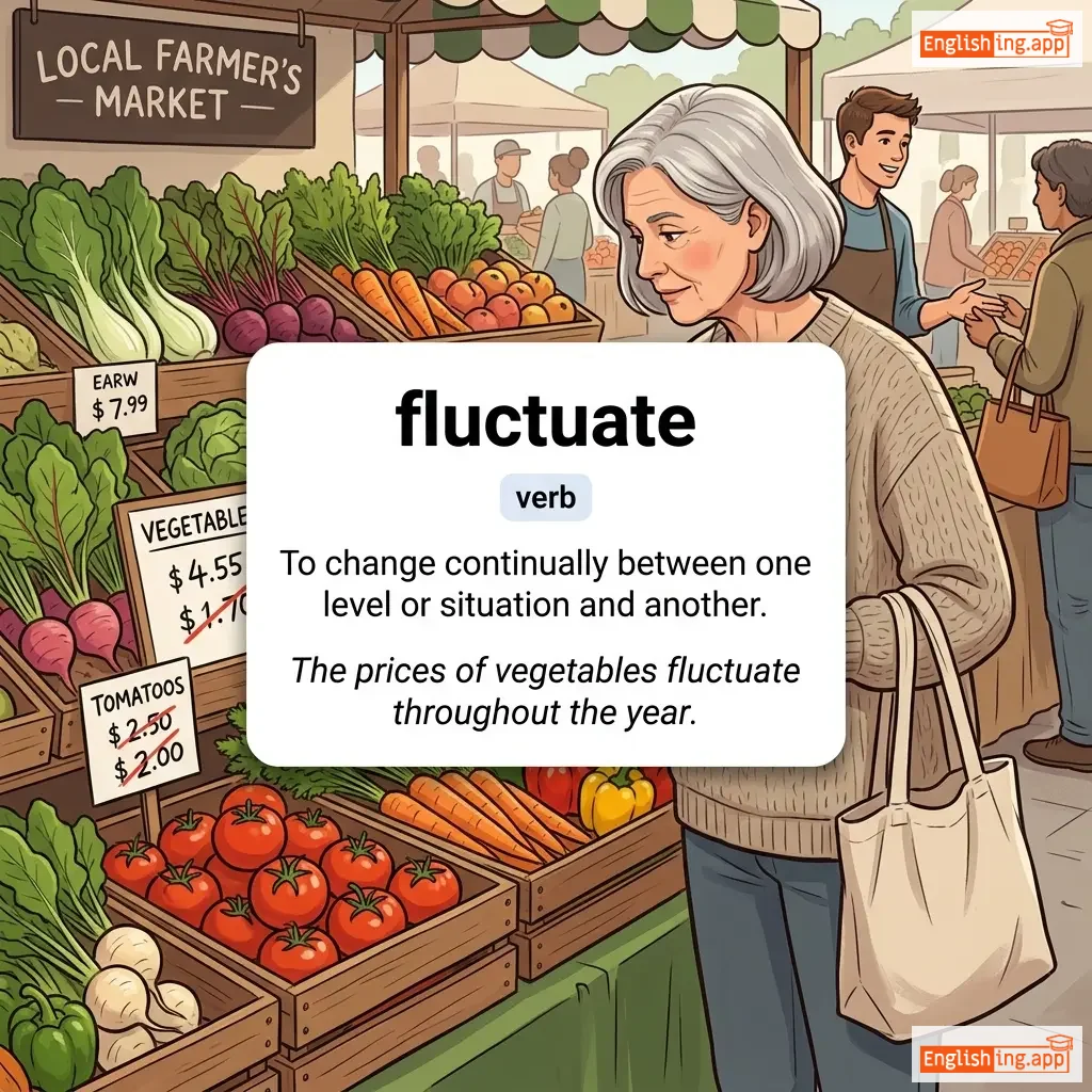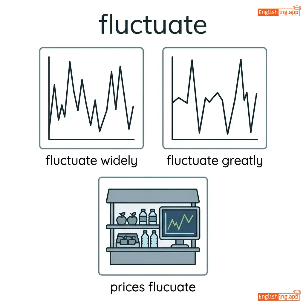 To rise and fall irregularly in number or amount; to change continually; to be unstable or vary.