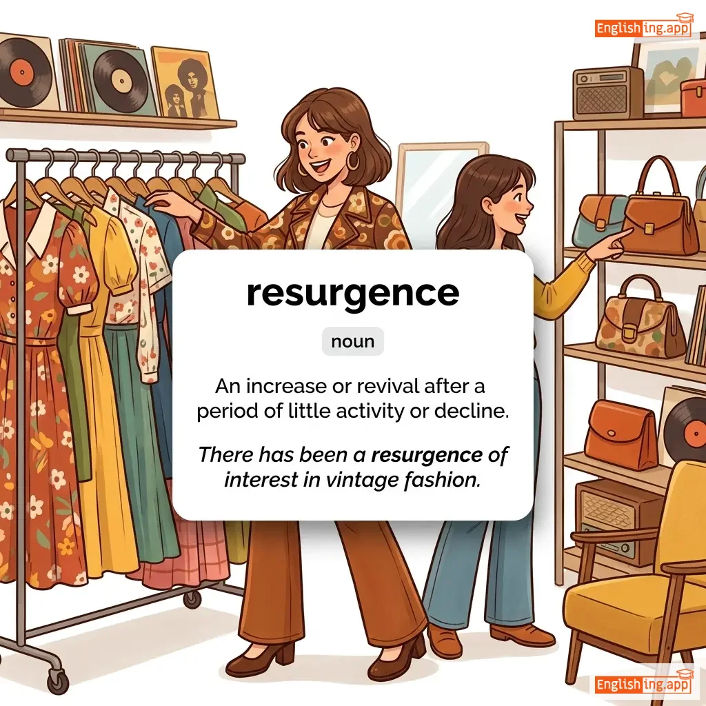 An increase or revival after a period of little activity, popularity, or occurrence; a renewal of strength or activity.
