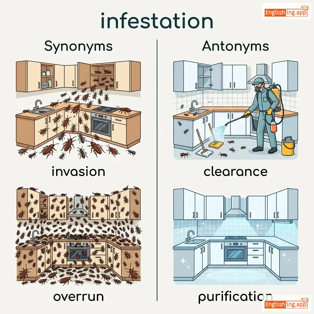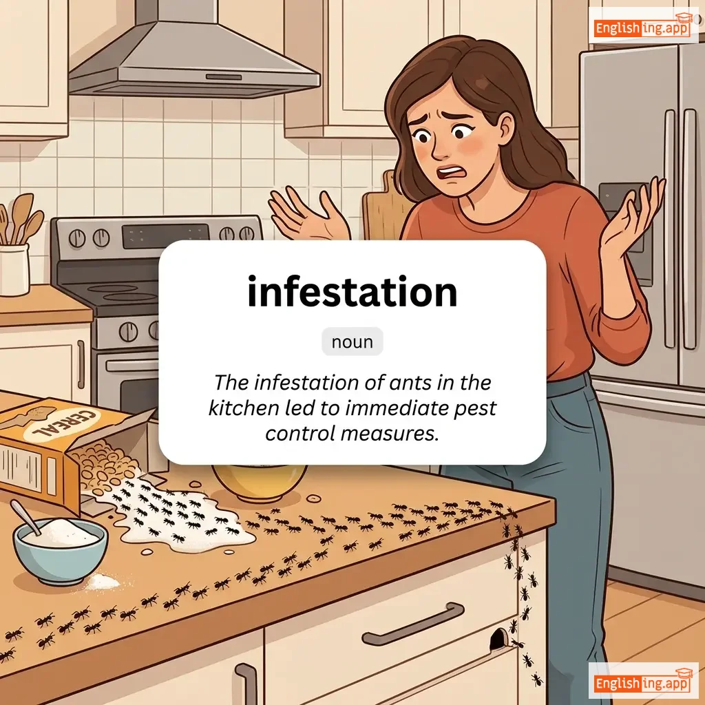 The infestation of ants in the kitchen led to immediate pest control measures. |