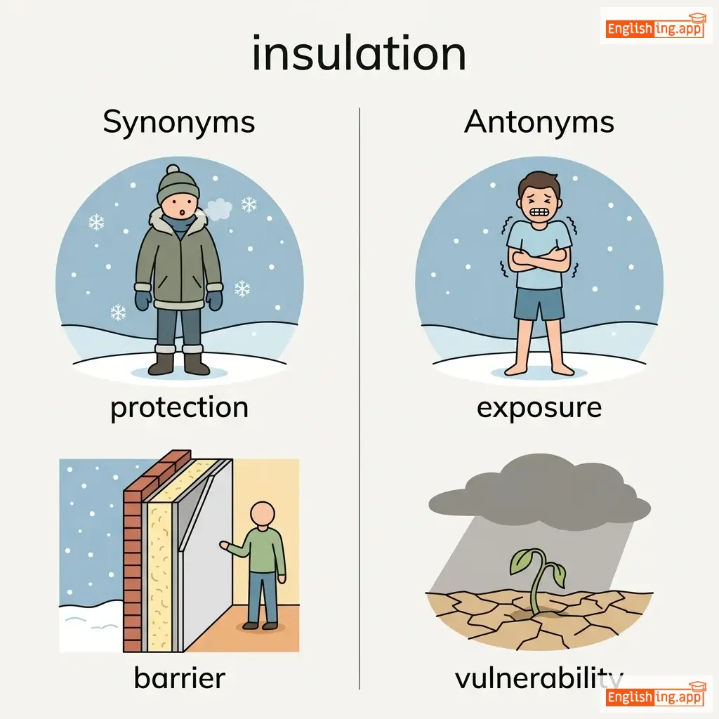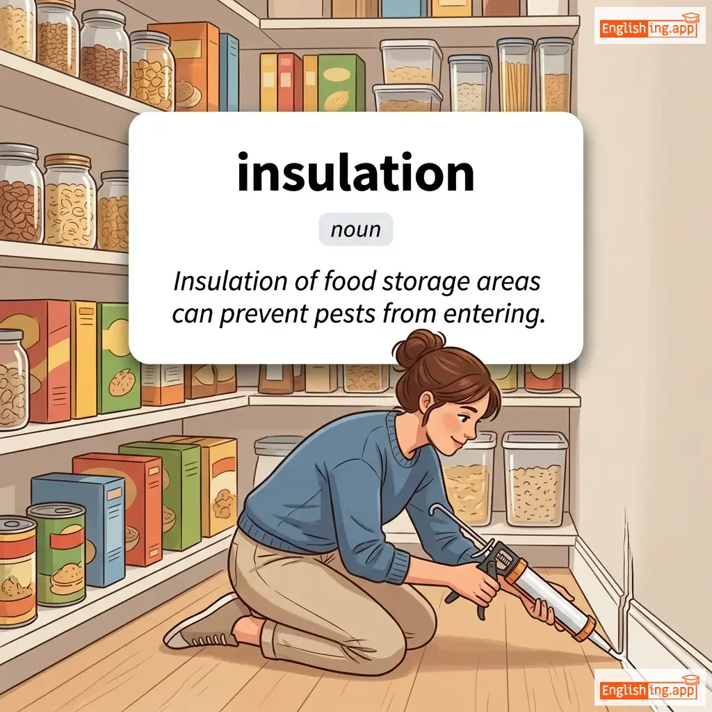 Material used to prevent heat, sound, or electricity from being transmitted from one area to another.