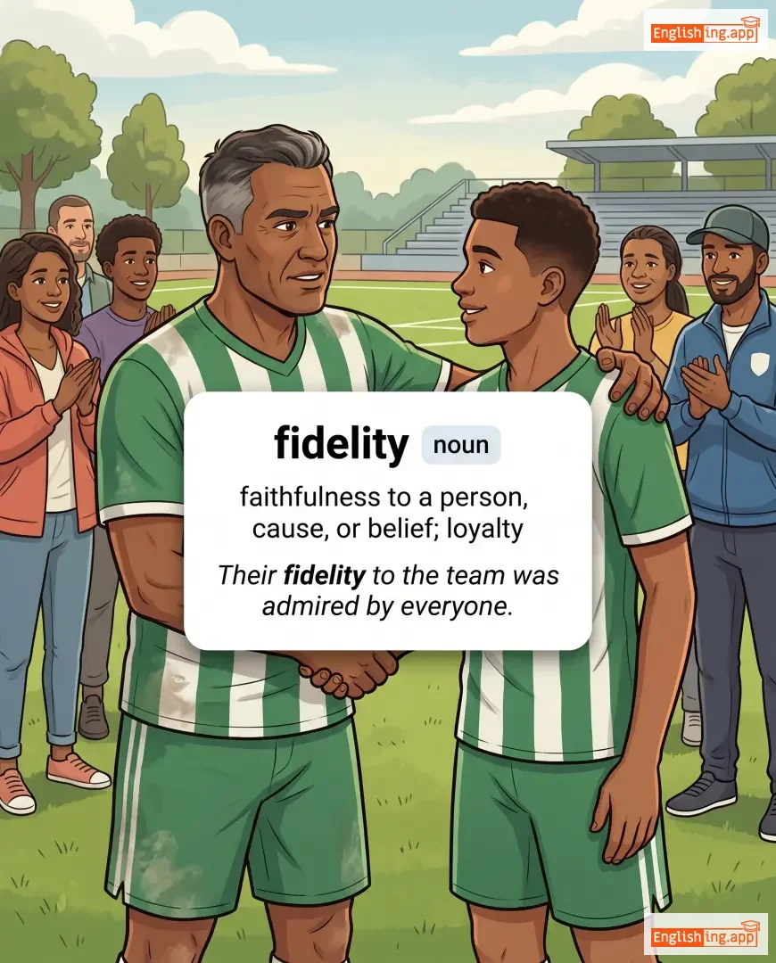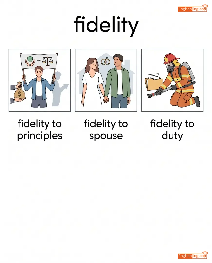 Faithfulness to a person, cause, or belief, demonstrated by continuing loyalty and support; accuracy or exactness.