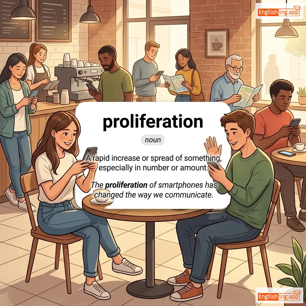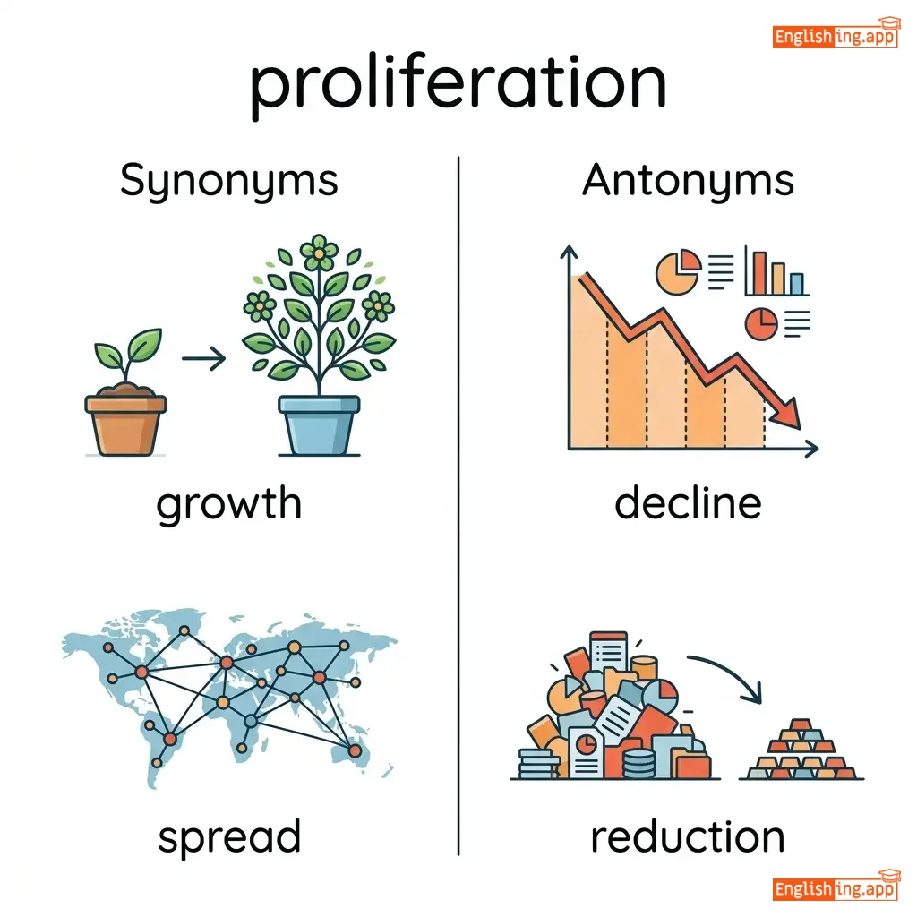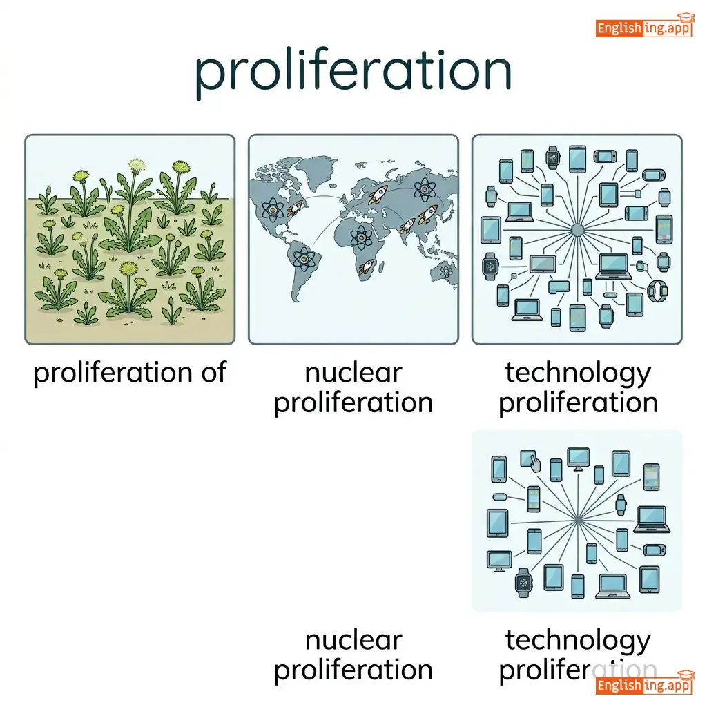 Rapid increase in the number or amount of something; rapid reproduction or multiplication.