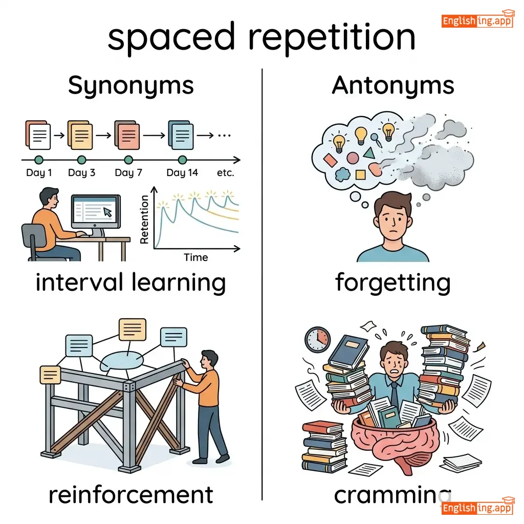 A learning technique that involves reviewing information at increasing intervals to improve long-term retention.