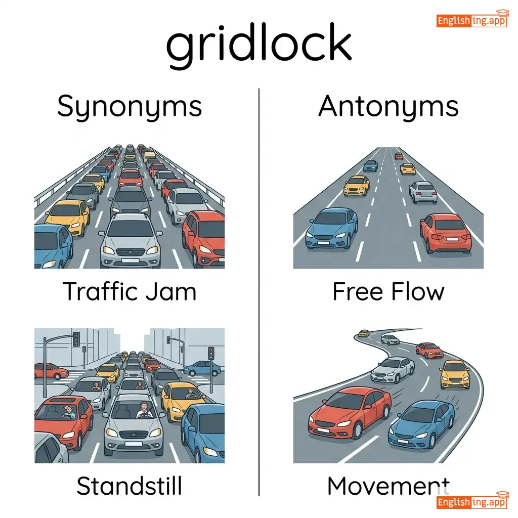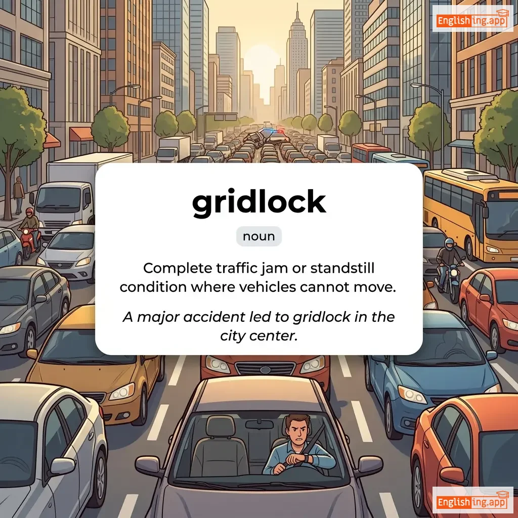 Complete traffic jam or standstill condition where vehicles cannot move.