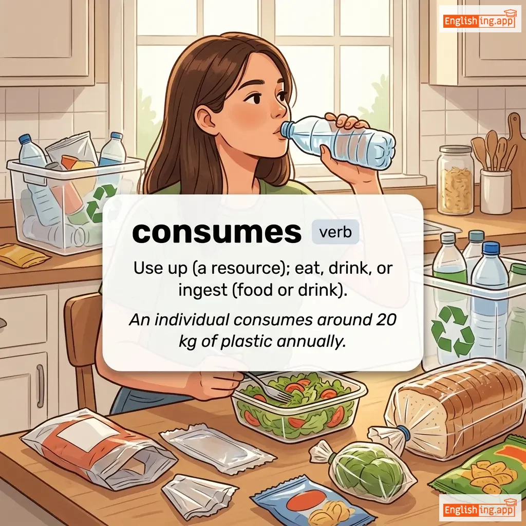 Use up (a resource); eat, drink, or ingest (food or drink).