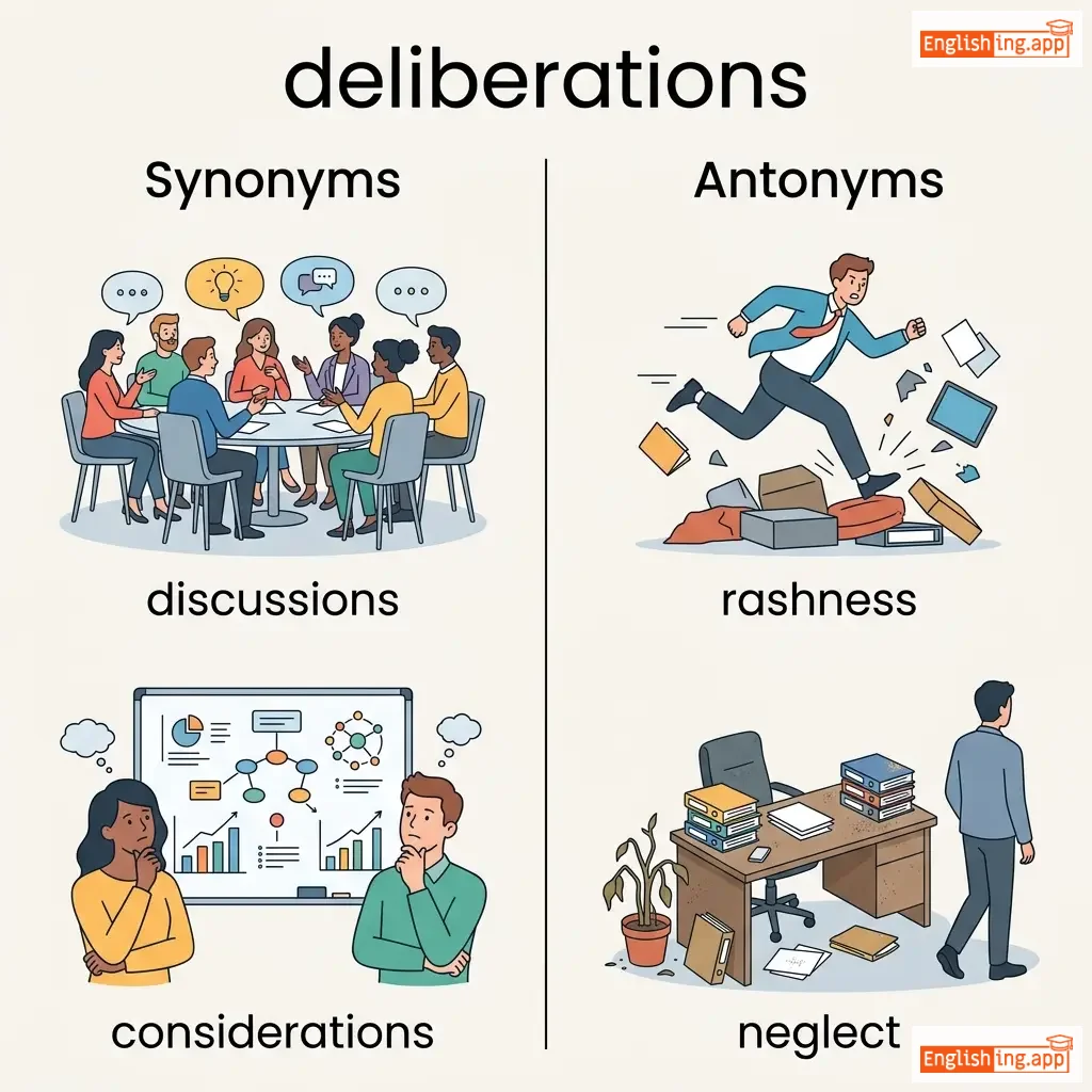 /dɪˌlɪb.əˈreɪ.ʃənz/