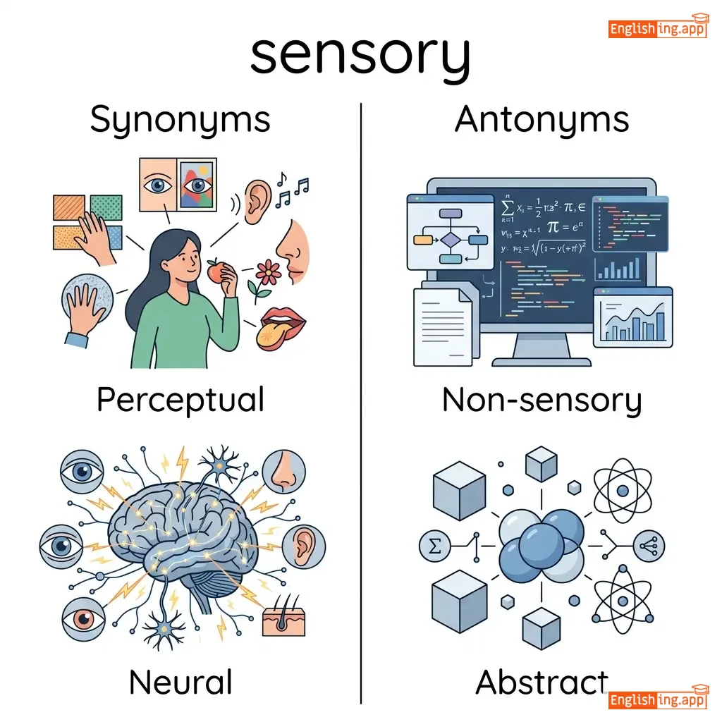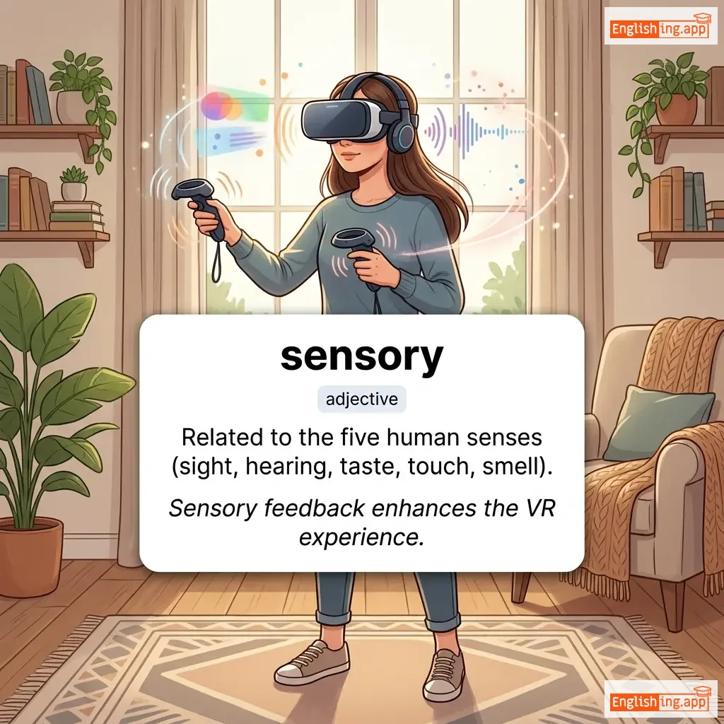 Related to the five human senses (sight, hearing, taste, touch, smell).