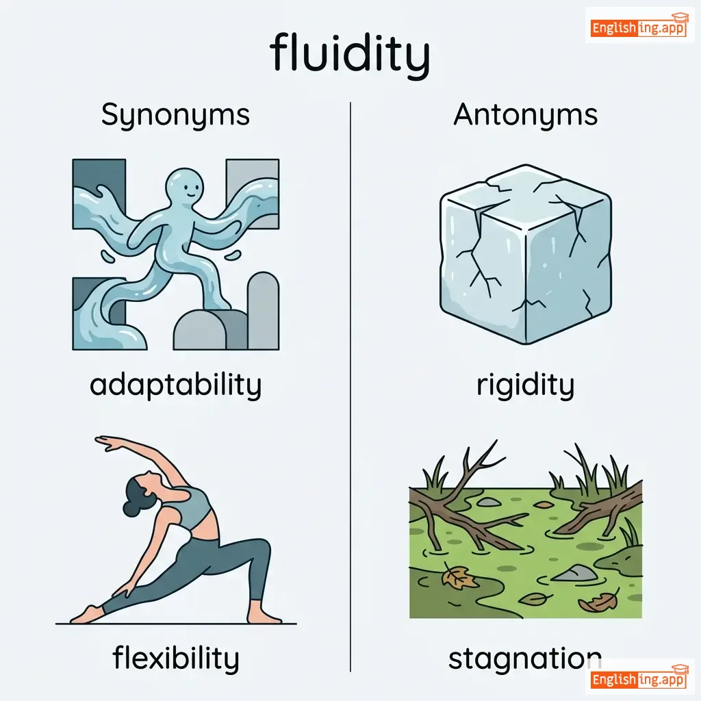The ability of a substance to flow easily; smooth and graceful movement or style.
