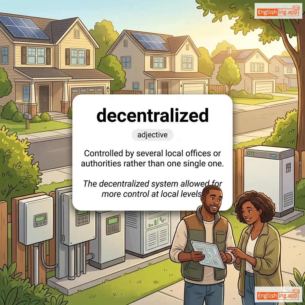 Controlled by several local offices or authorities rather than one single one.