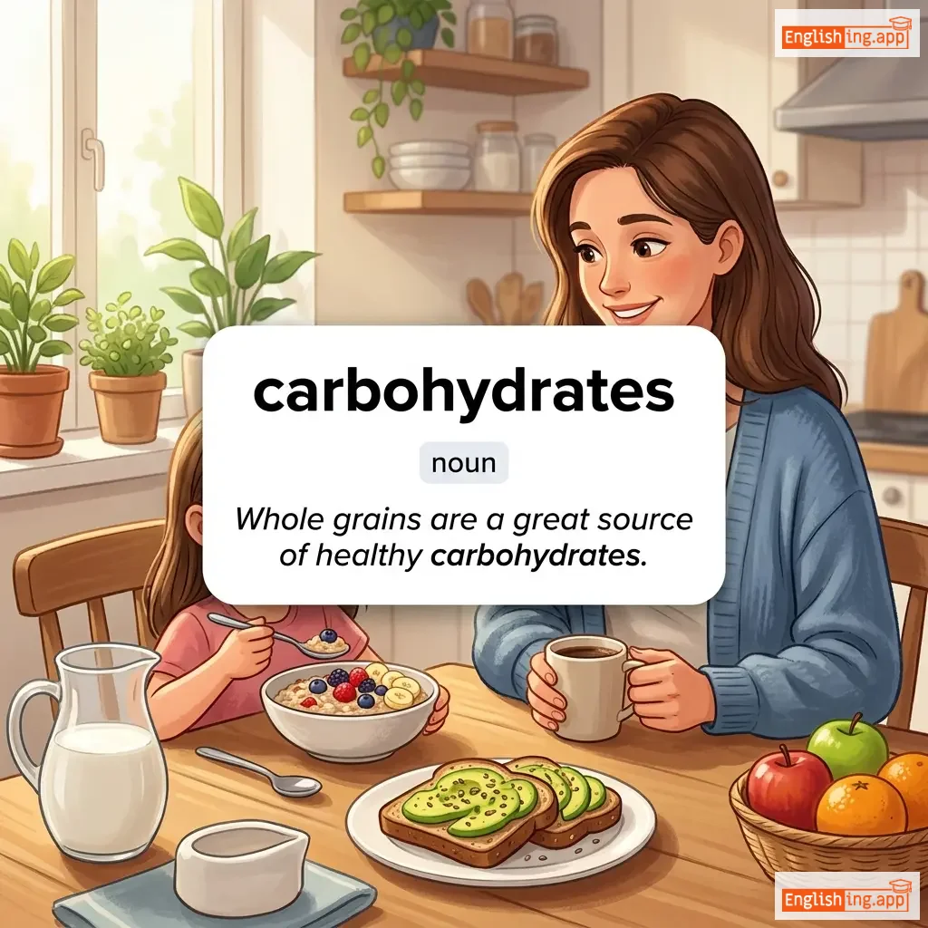 Organic compounds consisting of carbon, hydrogen, and oxygen, serving as a primary source of energy for the body.