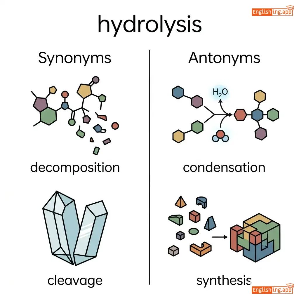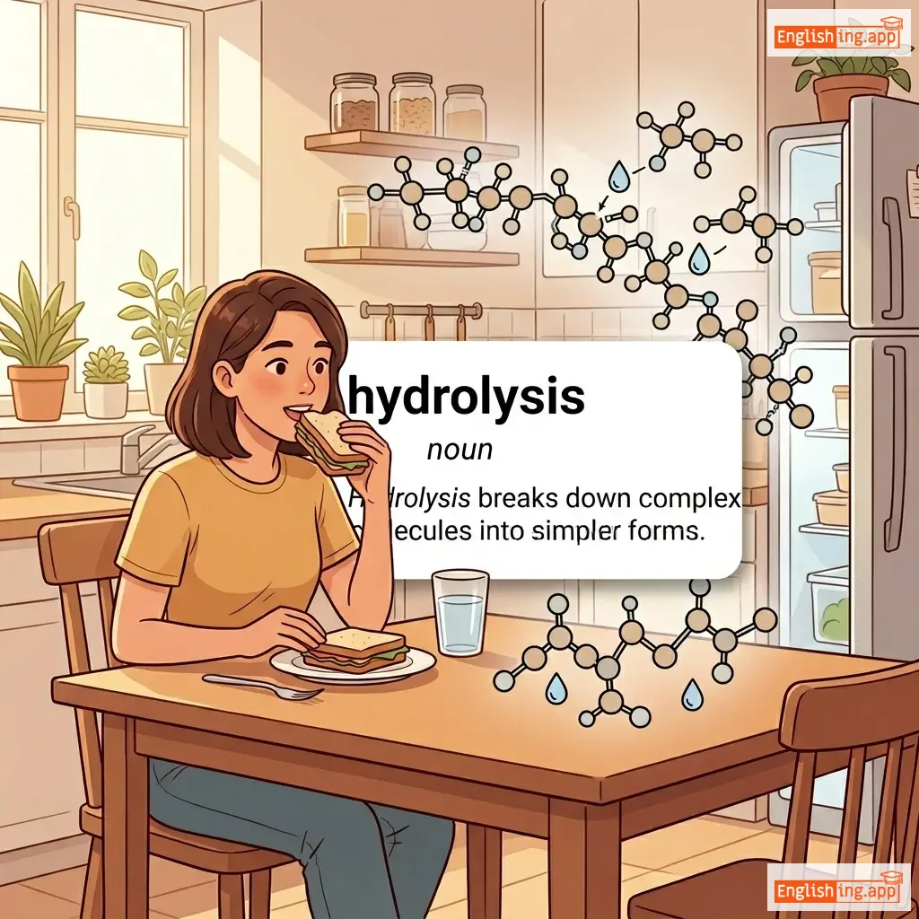 Hydrolysis breaks down complex molecules into simpler forms. |