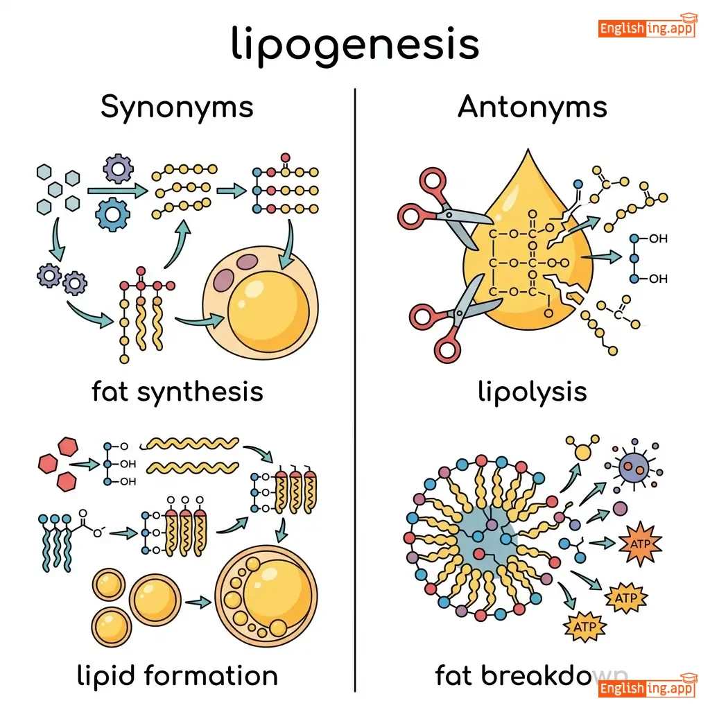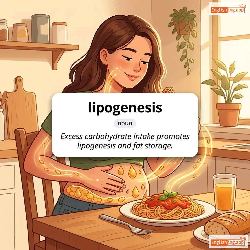The metabolic process of fat synthesis where excess carbohydrates are converted into fatty acids and stored as triglycerides.