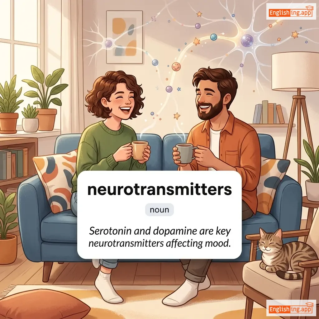 Chemical messengers that transmit signals across nerve synapses, affecting mood, behavior, and cognitive functions.