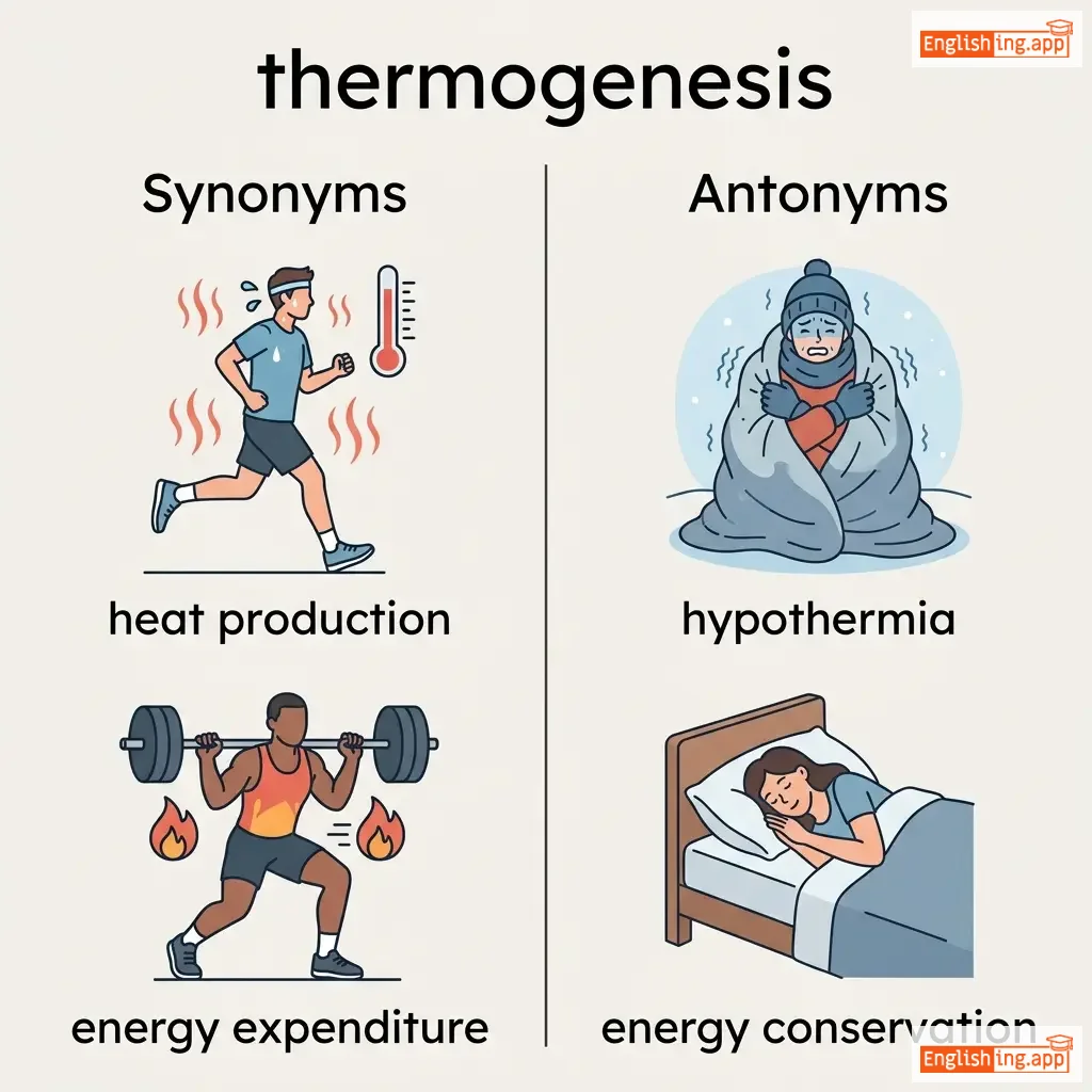 The process of heat production in living organisms, often associated with burning calories and energy expenditure.