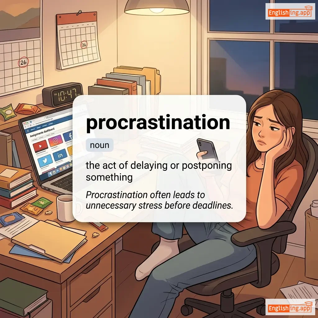 Procrastination often leads to last-minute stress. |