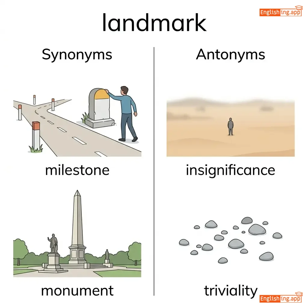 An object or feature of a landscape or town that is easily seen and recognized from a distance; an important stage or turning point.