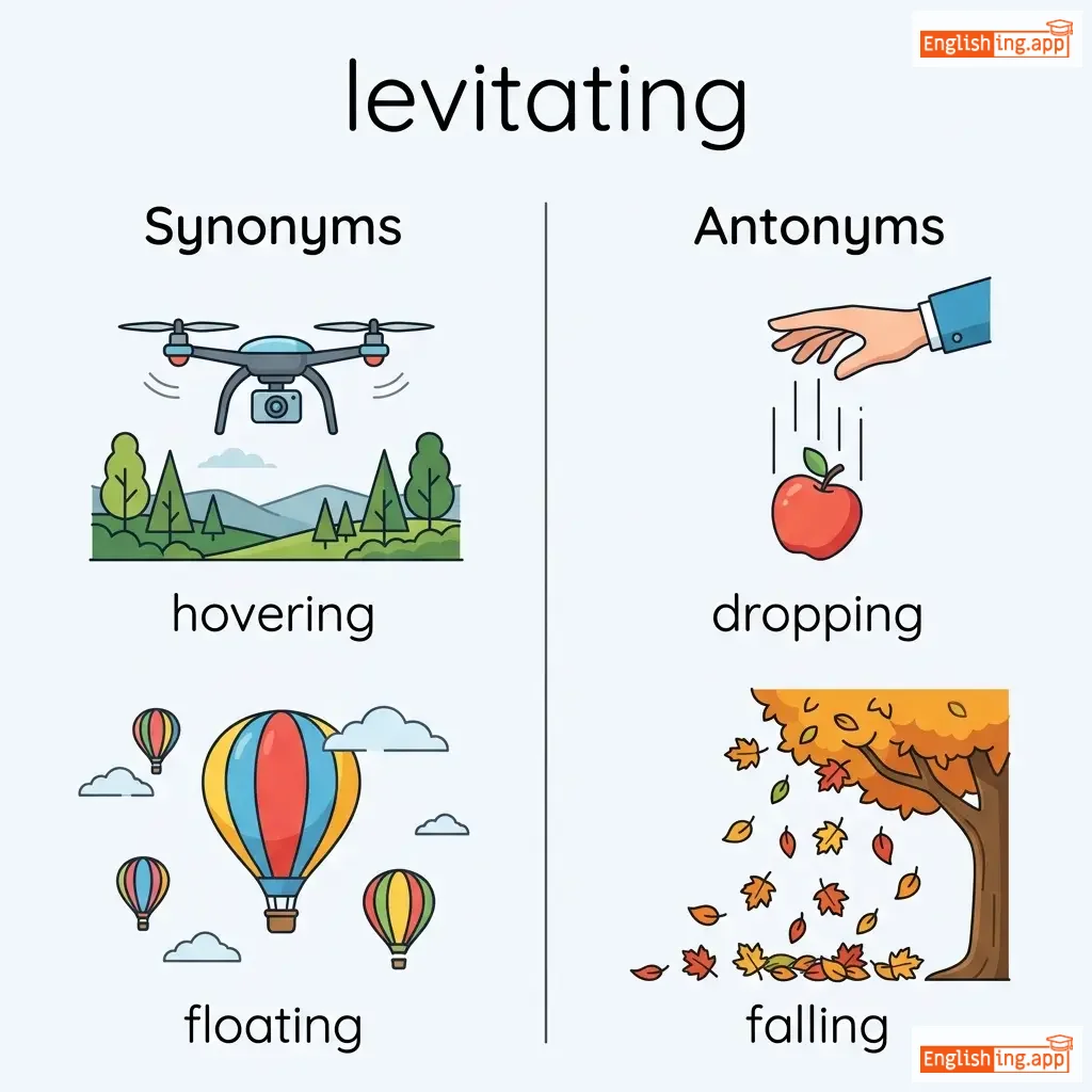 Rising and hovering in the air, especially as a result of supernatural or magical power.